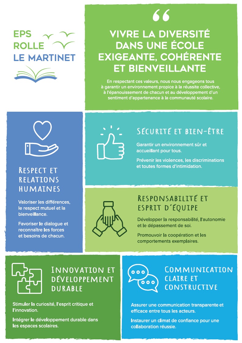 Cette charte exprime notre volonté commune de bâtir un cadre de vie scolaire fondé sur des valeurs essentielles :
